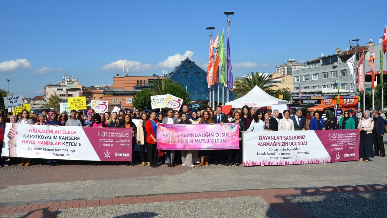 Sağlık Bakanlığı tarafından ülke genelinde yürütülen 1-31 Ekim Meme Kanseri Farkındalık Ayı etkinlikleri kapsamında gerçekleştirilen etkinlikte Cumhuriyet Caddesi’nden Zafer Meydanı’na doğru yoğun katılımla gerçekleşen bir yürüyüş yapıldı. Bursa Büyükşehir Belediyesi Bandosu’nun marşlarıyla eşlik ettiği yürüyüşe; İl Sağlık Müdürlüğü Halk Sağlığı Hizmetleri Başkanı Dr. İrfan Oğuz, Kamu Hastaneleri Başkanı Dr. Melike Savaş, sağlık çalışanları, sivil toplum kuruluşları, kanser dernekleri ve öğrenciler katıldı. Vatandaşların yoğun ilgiyle takip ettiği etkinlikte, lise öğrencileri ellerinde tuttuğu meme kanserinin simgesi olan dev ‘pembe kurdele’ ile cadde boyunca yürüyüşe eşlik etti.