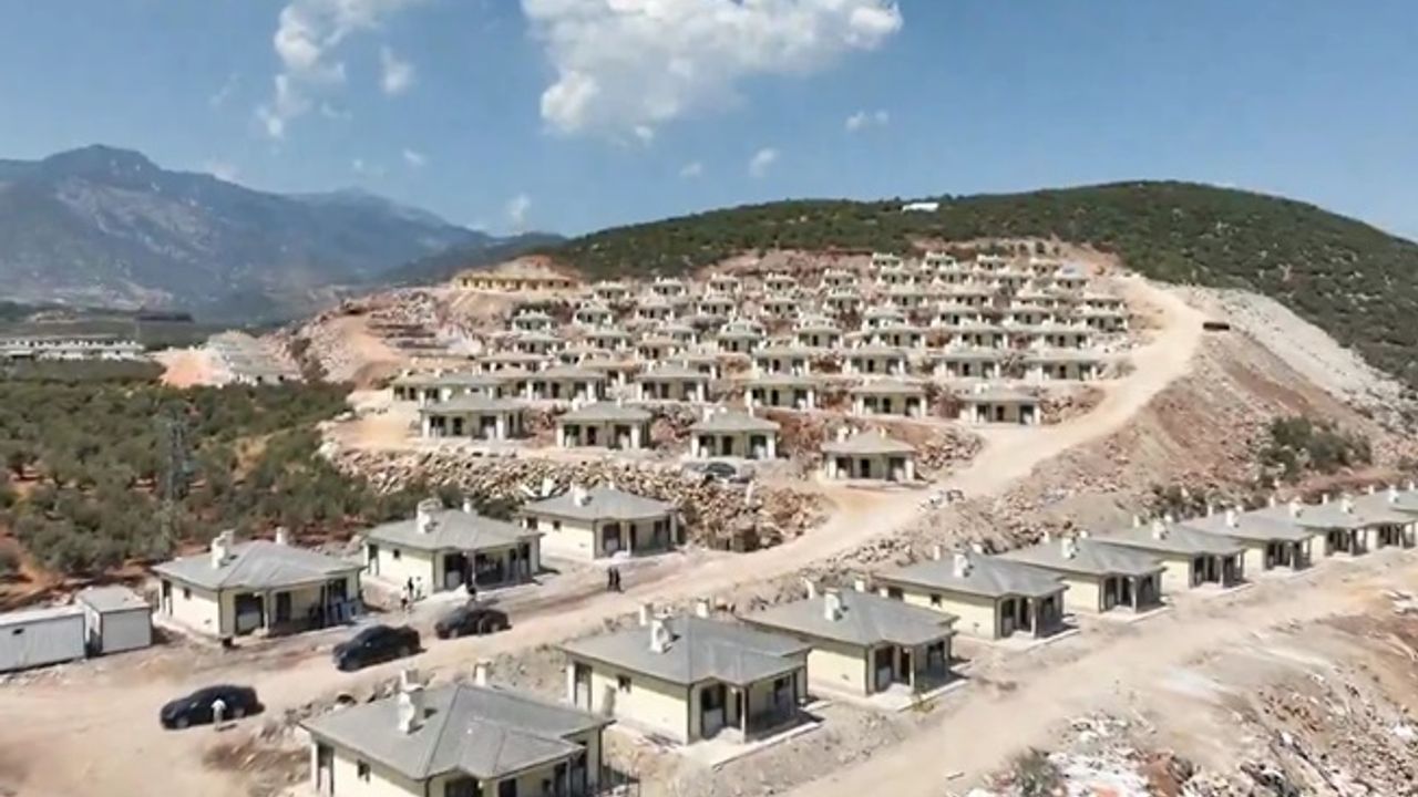 Hatay’ın Hassa ilçesinde, 6 Şubat 2023’te meydana gelen depremlerin ardından yapımına başlanan 622 afet konutunun inşaatı hız kesmeden sürüyor.