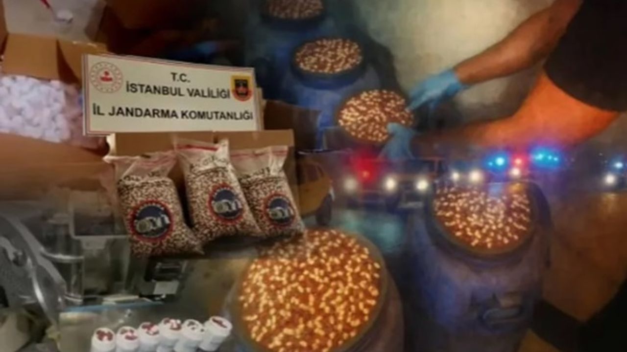 İstanbul İl Jandarma Komutanlığı’nın istihbari çalışmalarıyla düzenlenen operasyonda, 7 milyon 896 bin adet uyuşturucu hap ve 63 kilogram ham madde (yaklaşık 1 milyon 280 bin hap üretilebilecek kapasitede) ele geçirildi.