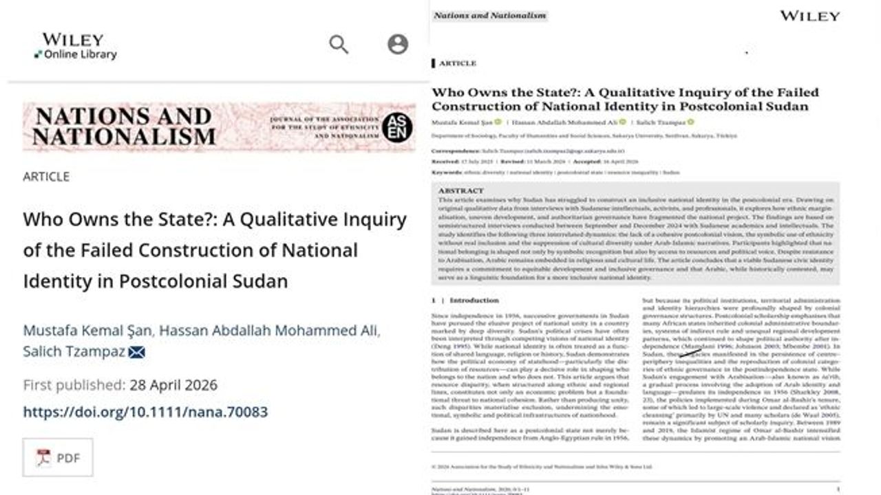 Sakarya Üniversitesi Sosyoloji Bölüm Başkanı Prof.Dr. Mustafa Kemal ŞAN ve doktora öğrencileri Hassan Abdallah Mohammed Ali ile Salich Tzampaz imzasını taşıyan makale, milliyetçilik ve etnisite alanının önde gelen otorite dergilerinden Nations and Nationalism’de (Q1, IF: 2) yayımlandı.