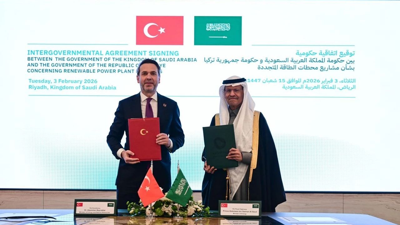 Enerji ve Tabii Kaynaklar Bakanı Alparslan Bayraktar, Suudi Arabistan’ın başkenti Riyad’da Suudi Arabistan Enerji Bakanı Abdulaziz bin Selman Al-Suud ile yenilenebilir enerji santrali projelerine yönelik hükümetlerarası anlaşmaya imza attı.